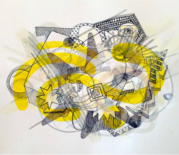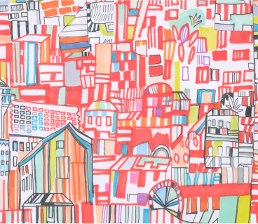 Miriam Singer grew up in Buffalo, New York, In 2000 she received her BA in Sociology and Studio Art from Brandeis University, and in 2003 her MFA in Painting from Massachusetts College of Art. Since moving to Philadelphia in 2004; Miriam Singer has exhibited at LG Tripp Gallery, Woodmere Art Museum, Space 1026, Friends of the Print and Picture Collection, Art in the Airport, James Oliver Gallery, Gallery Siano, Inliquid at Painted Bride, Art in City Hall, Topstitch, Spector Gallery, Gallery at Minnow, and Padlock Gallery.Singer uses a combination of printmaking and drawing media to create her unique works on paper and designs for public art projects. Noted public art projects with The Philadelphia Mural Arts Program include; Southeast by Southeast, 2013, Under The Clothespin, 2012, and Take Me to the River, 2010. Singers accumulated imagery becomes layered and busy with impressions of the cityscape. Singer currently teaches printmaking part-time at Fleisher Art Memorial and is a member of the artist collective, Space 1026.