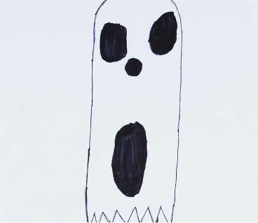 With an aesthetic that captures elements of mass-market horror and neo-expressionism, David Schmuckler’s work is uniquely accessible. Using source imagery culled from Google image searches for phrases like “Halloween Scary Mask Costume,” “Bloodscream,” and “Krampus Horror,” which yield images from the horror genre from around the world, Schmuckler develops singular characters using bold design elements and color schemes. Below the figure he incorporates the often-randomized text (sometimes in other languages, from Russian to Italian) from the search results into his compositions, supplying them with equally macabre captions.